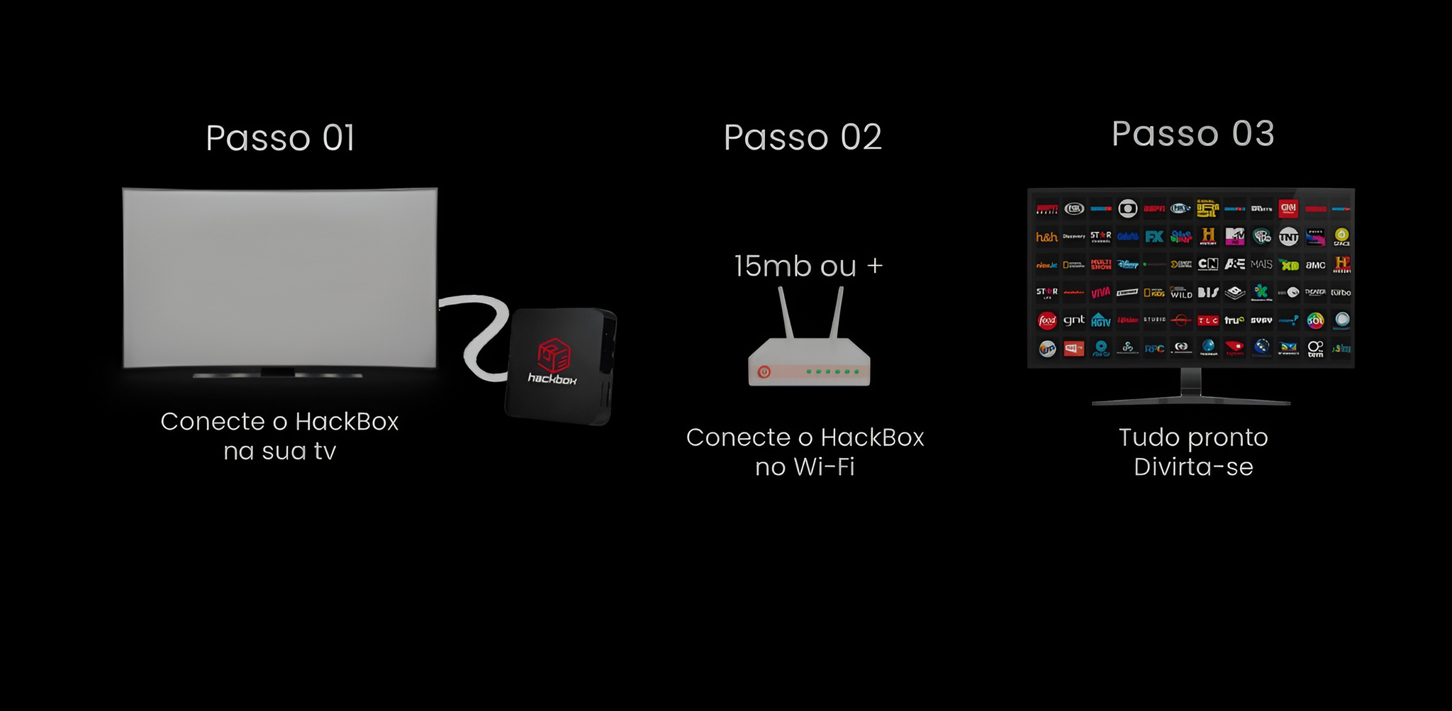 o hackbox é umaparelho ChromeCast que transforma uma TV Convencional em uma TV Inteligente, DO TIPO PLUG AND PLAY ( BastA HDMI na sua TV e no Hackbox, o Hackbox na tomada e é só aproveitar!